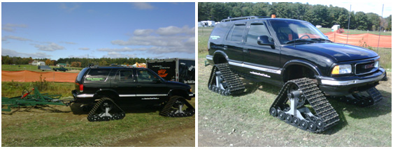 October 2009 - American Track Truck displays a Chevy Blazer grooming truck at the NHSA Grass Drags and Watercross in Epping, New Hampshire! Yankee Metal Works, the N.H. area dealer for American Track Truck displayed a beautiful, black Chevy Blazer fully equipped for grooming, using DOMINATOR series tracks and an American Track Truck Hydraulic System. The Blazer was coupled to a Yankee Metal Works groomer drag and was fully functional for demonstrations during the show. The outdoor display proved to be a huge hit visited by thousands of attendees. In fact both American Track Truck and Yankee Metal Works ran out of brochures before the event closed on Sunday! Look for American Track Truck at similar events in the near future