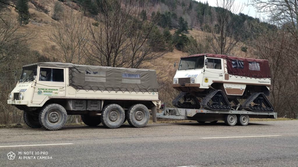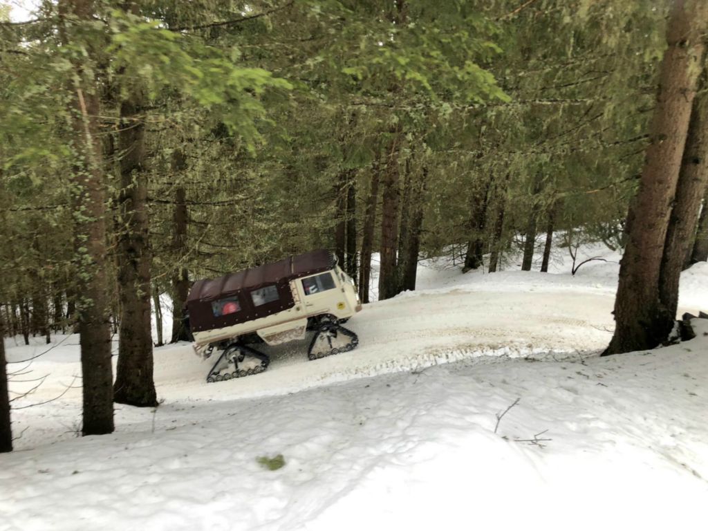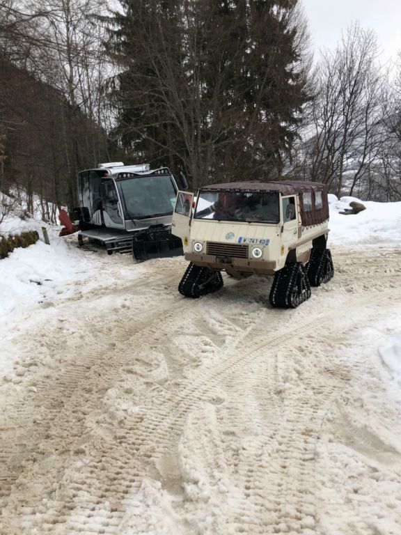"Pinz" or Pinzgauer 4x4 and 6x6 all terrain vehicles by Stey-Daimler-Puch or BAE Systems INC. has been a popular choice for military applciations but has also a strong aftermarket enthusiant/hobbyist following. American Track Truck track conversion systems have been used to gain even more offroad and winter/snow capabilities for these vehicles.